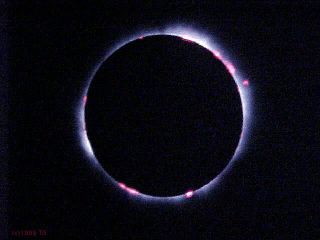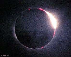 CoronaSeconds are necessary for the eyes to accustom to the sudden darkness and to see the famous corona. It gradually ignites as the pupil opens. |