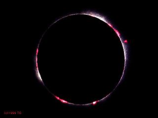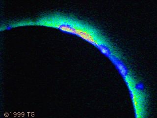 ProminencesBefore the eclipse, my most instense wish was to have enough luck to see a prominence. It was more than I could expect. They were visible with naked eyes. The photographic result is far from what observable the D-day. However, it is further that I imagined to be able to obtain. This is a very nice souvenir. |